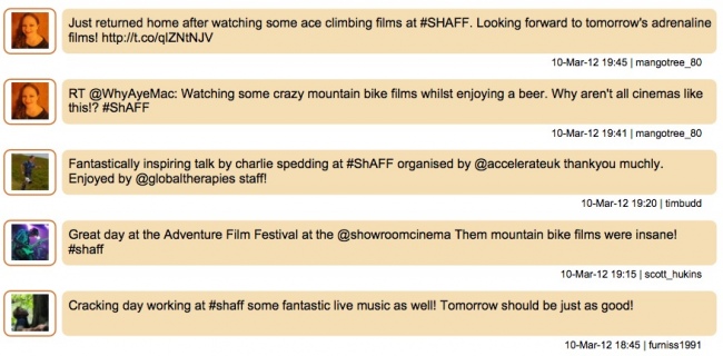 Read all the hundreds of comments on our live Showroom cinema bar twitter screen feed from 2012.